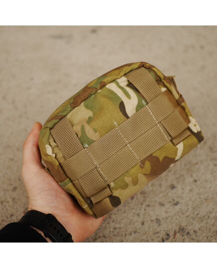 На тыльной стороне подсумка расположена система molle для крепления на любое снаряжение имеющее панели фиксации системы MOLLE.