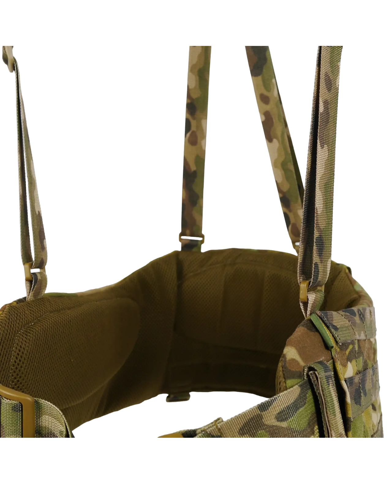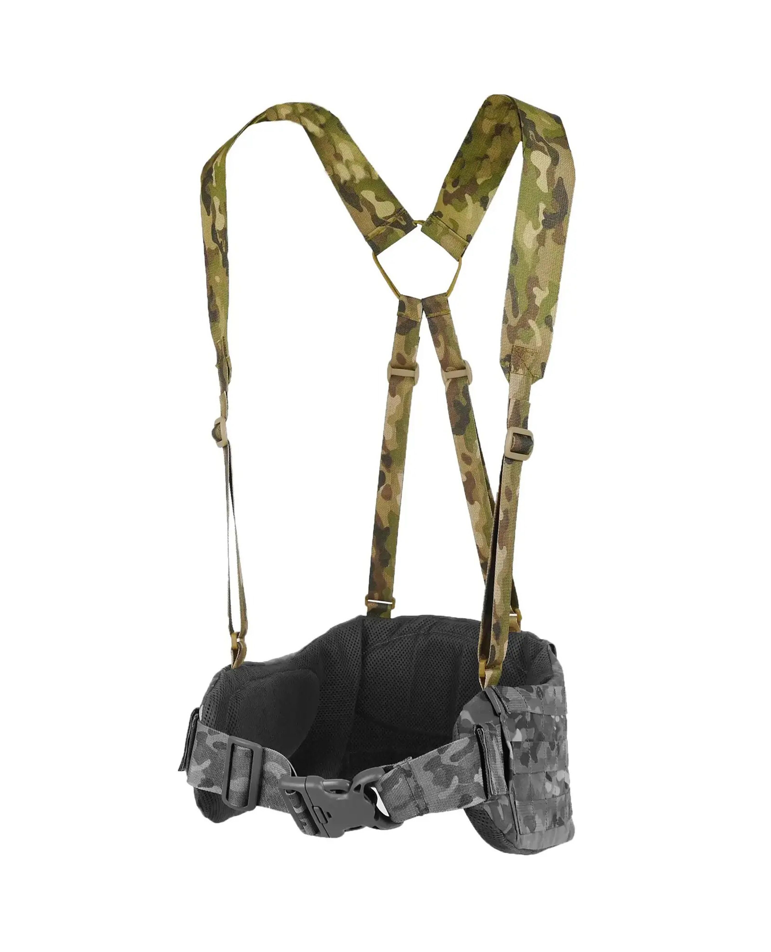 Лямки могут крепиться к любым тактическим поясам, имеющим базовые элементы фиксации в верхней части конструкции.