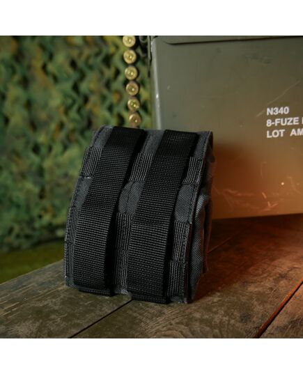 На тыльной стороне подсумка расположена система molle для крепления на любое снаряжение ,имеющее панели фиксации системы MOLLE.