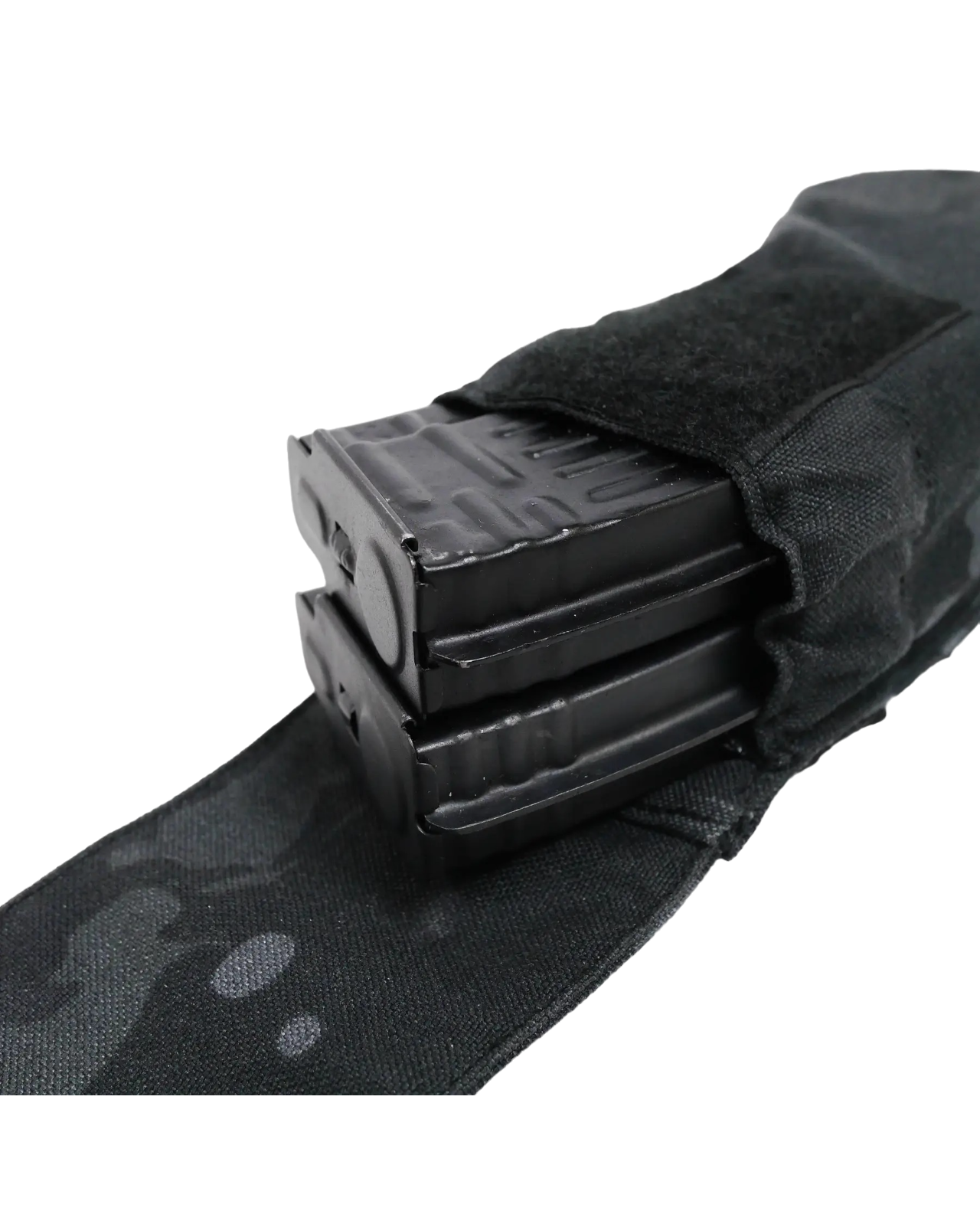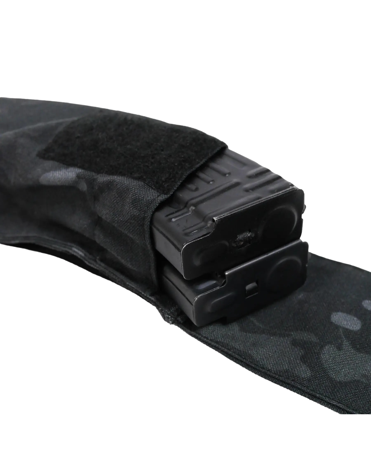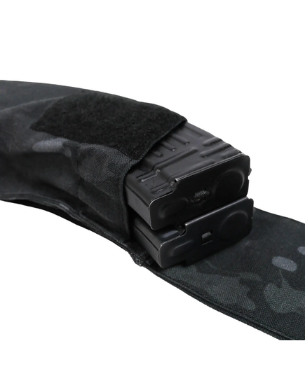 Дополнительная фиксация резинкой, что не позволит выпасть магазинам из подсумка.