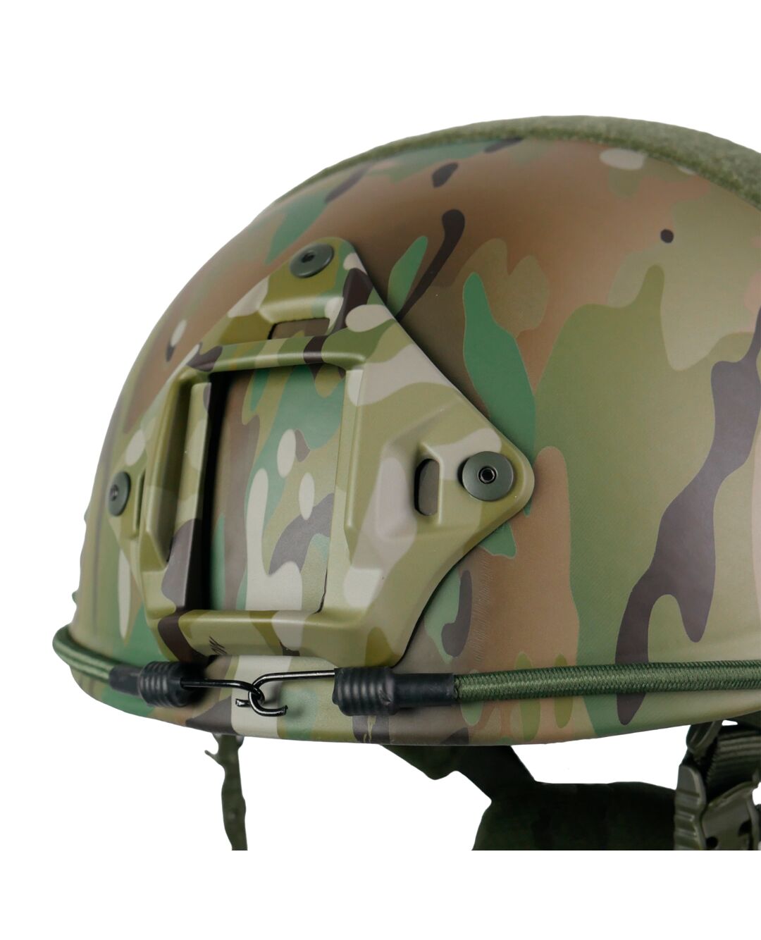 Особенностью шлема является его окраска, рейки, крепление ПНБ и сам шлем имеют окраску мультикам. Такая технология покрытия обеспечивает дополнительную маскировку. В комплекте идет боковой крепеж для фиксации аксессуаров.