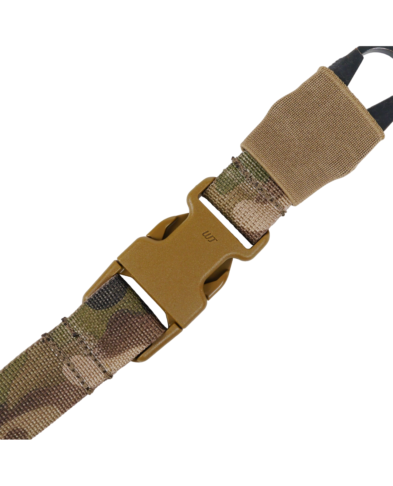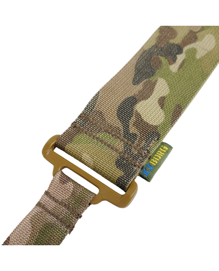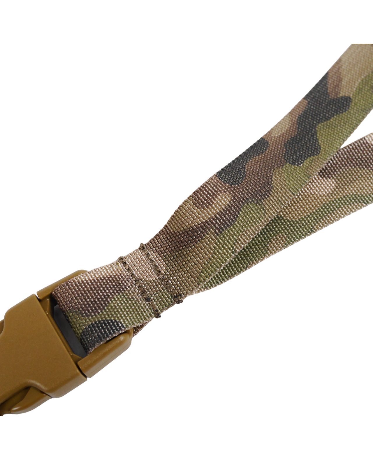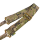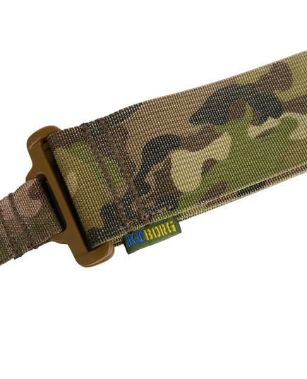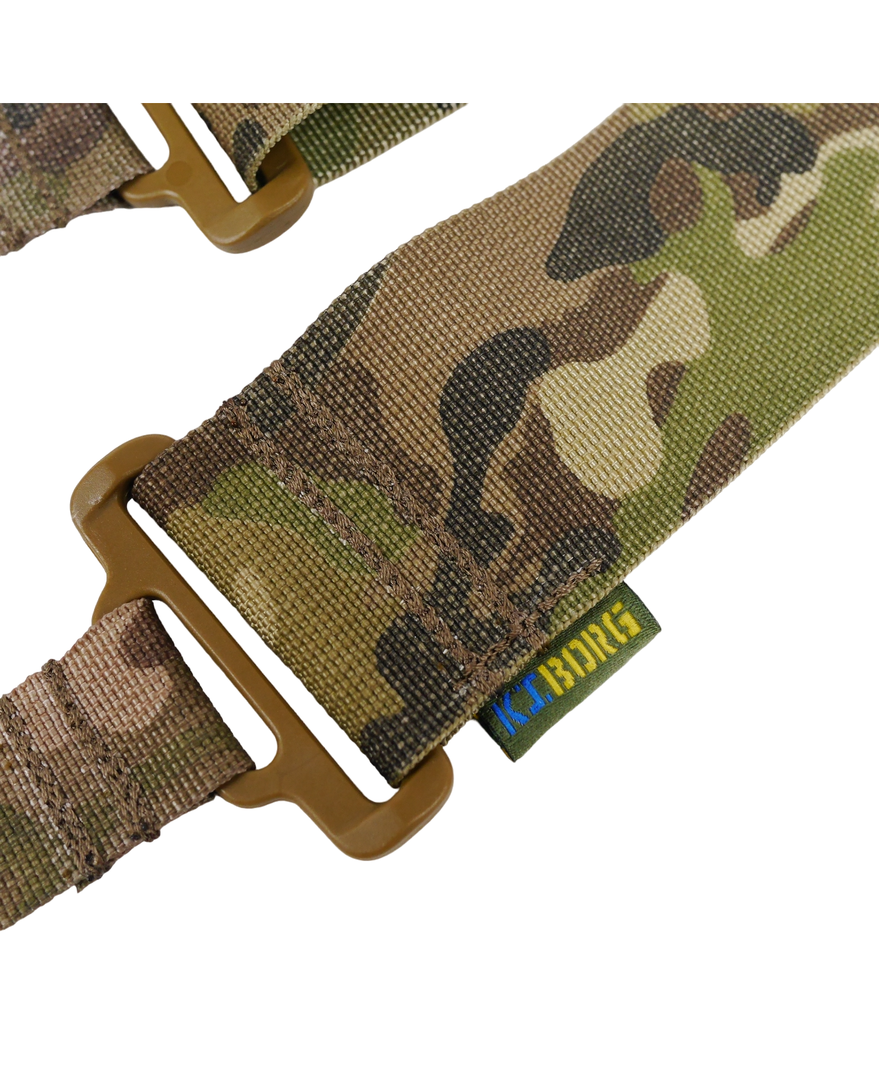 Камуфлированная с лицевой и оборотной стороны стропа не меняет цвет и не выгорает на солнце. Ремень имеет систему быстрого сброса и регулируется по длине.
