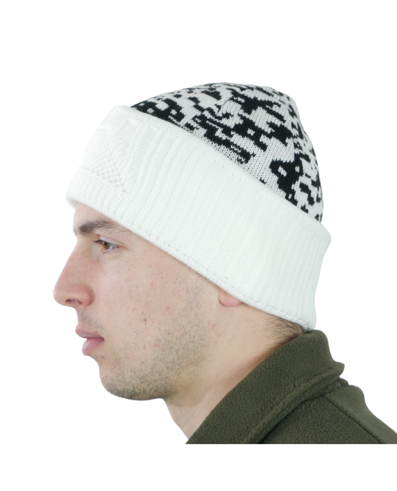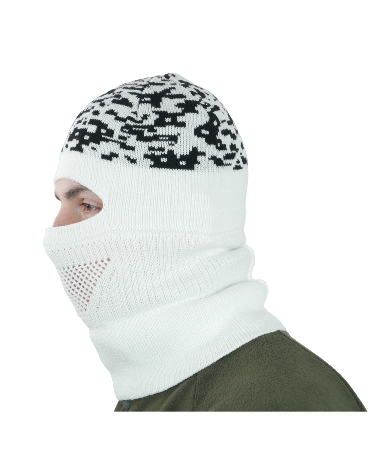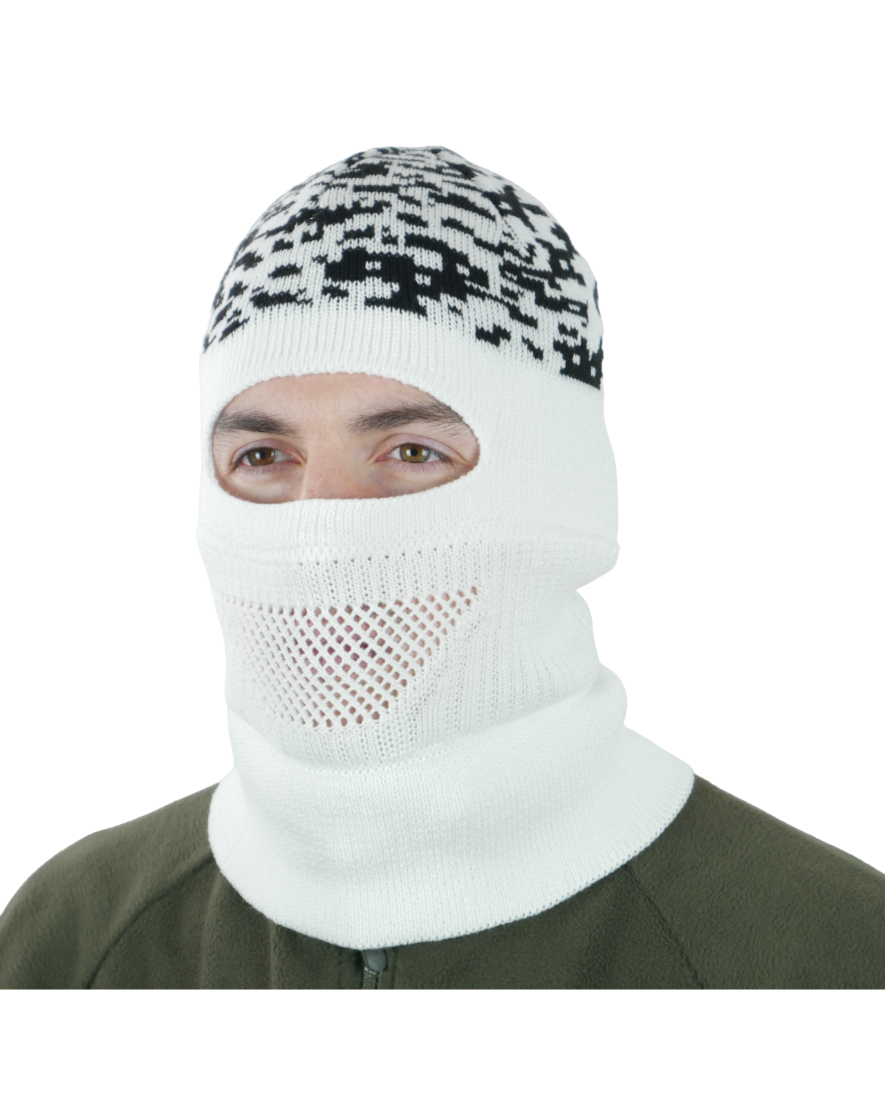Шапка-балаклава вязаная белый пиксель