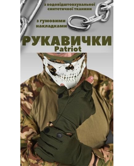 Перчатки демисезонные Patriot отвечают всем необходимым параметрам для защиты рук человека в прохладных природных условиях. Изделия пошиты из водоотталкивающей синтетической ткани с резиновыми накладками с внутренней стороны ладони, исключающими выскальзывание походного снаряжения из рук в мокрую погоду
