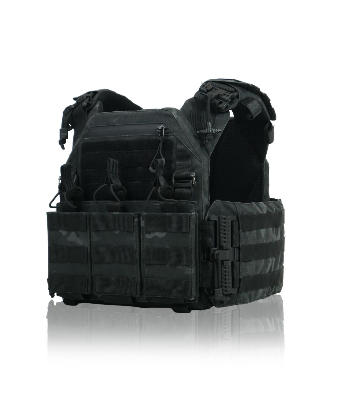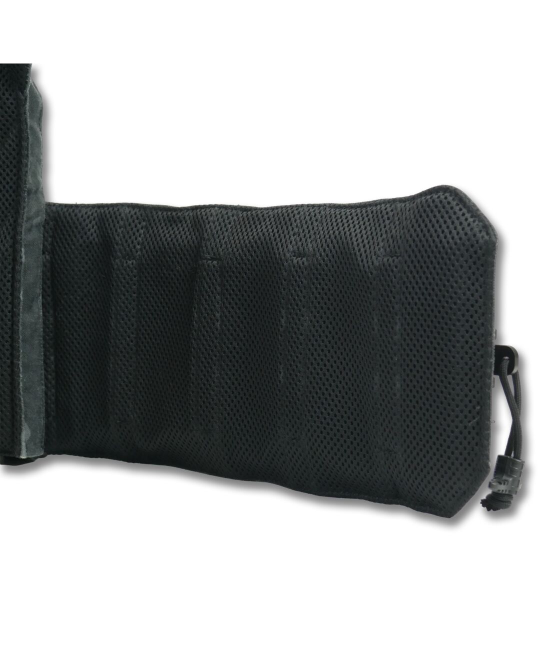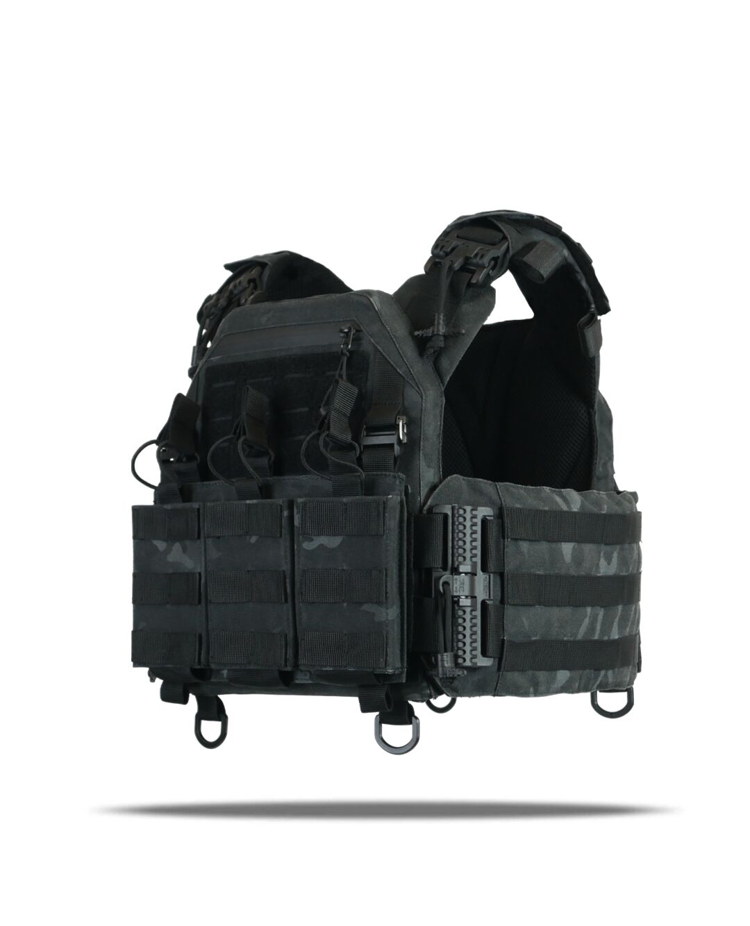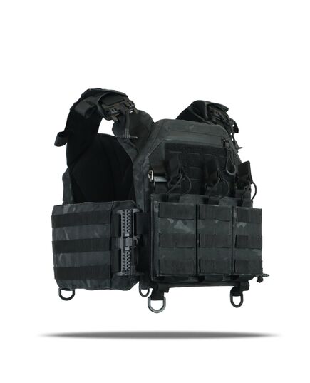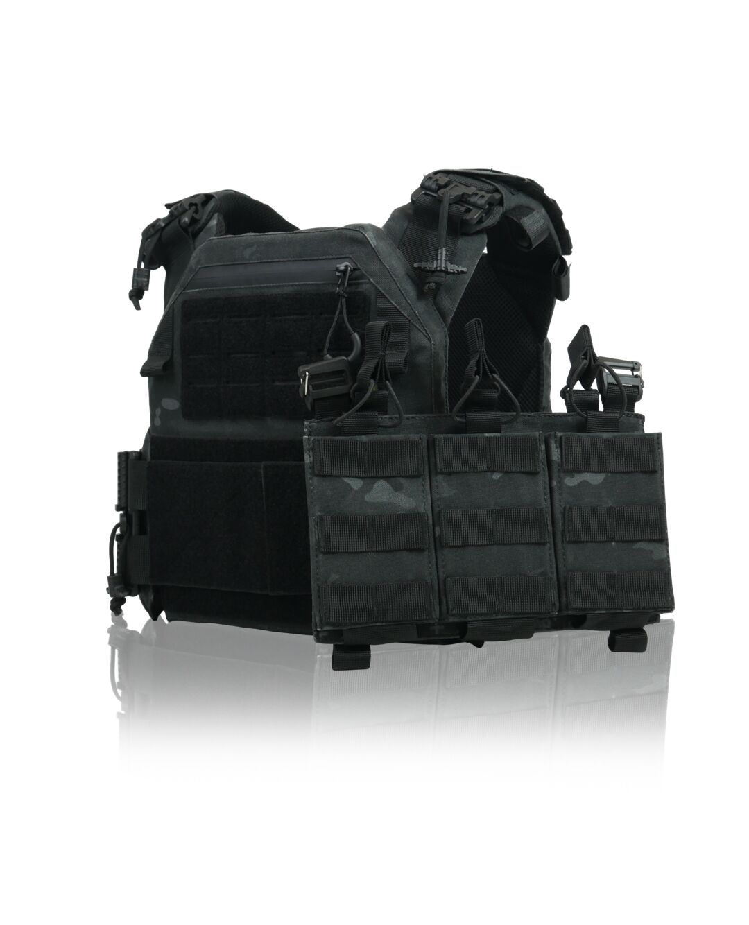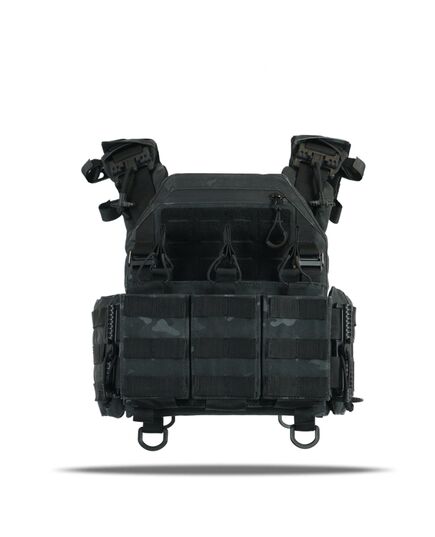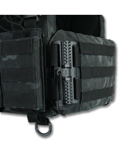 Плитоноска оснащена съемной передней Molle панелью, которая крепится к основанию на Velcro и дополнительно двумя карабинами Woojin. На ней удобно размещаются 3 итога под 1 или два магазина, или другое Molle-совместимое снаряжение. Эту панель можно быстро заменить другой с закрёклым на нее заранее набором нужных итогов.