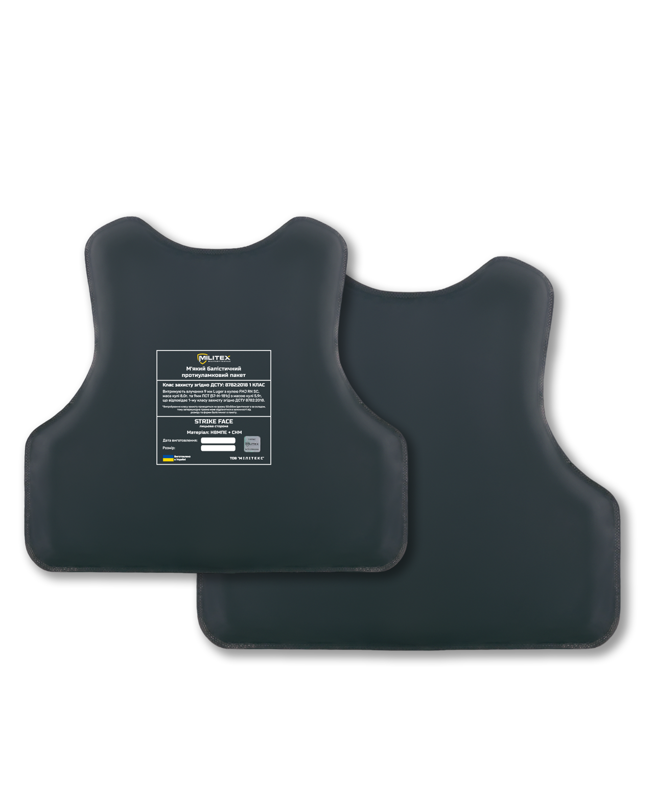 *Под 1 классом понимается эквивалент по составу, который испытывается на стандартных лабораторных образцах 500х500мм, поэтому внепрепятственная травма может отличаться в зависимости от размера и формы баллистического пакета.