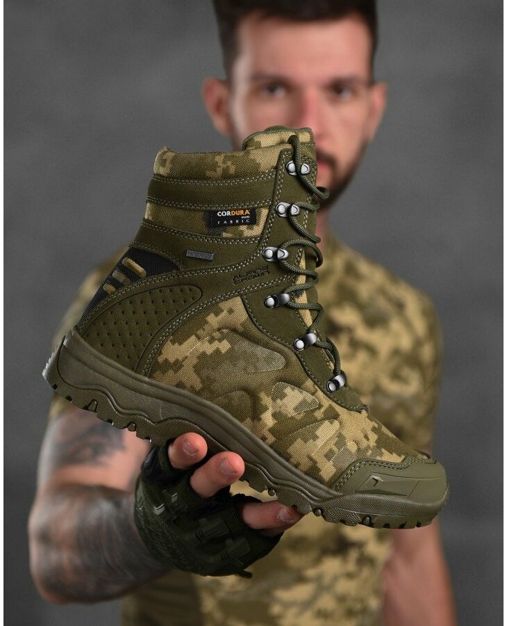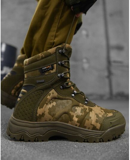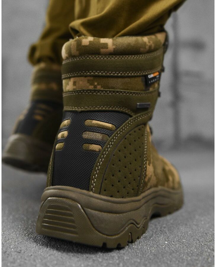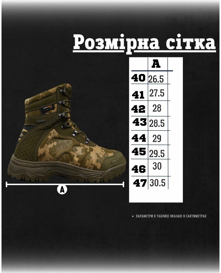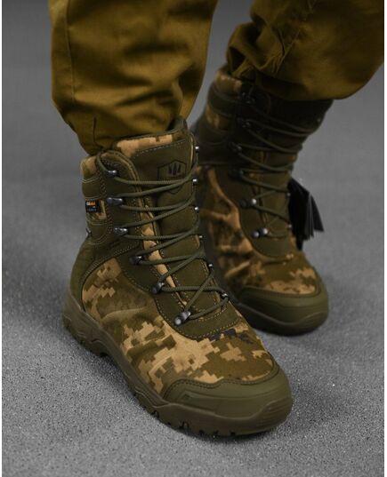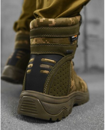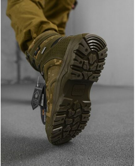 Верх комбінований, складається з трьох різних матеріалів. Перший матеріал – формована Cordura 1000D, сучасний, міцний, дихаючий матеріал, який використовують майже всі відомі бренди, другий матеріал - натуральна замша, високої якості, міцна та надійна, товщина замши від 1,6-1,8 мм, третій матеріал – формований TPU носок – головний функціонал – захист передньої частини стопи.