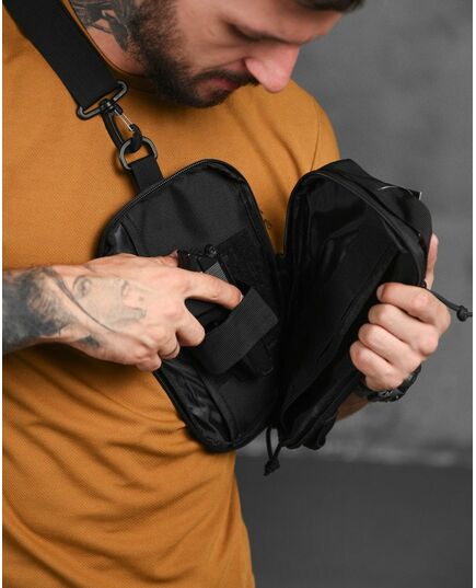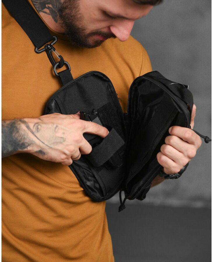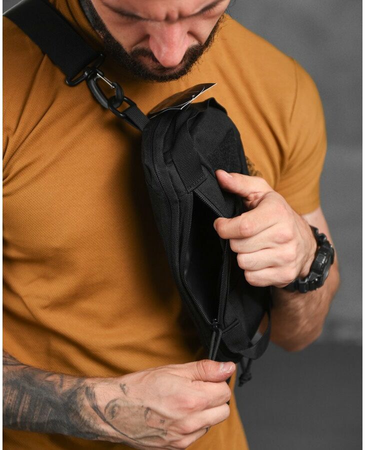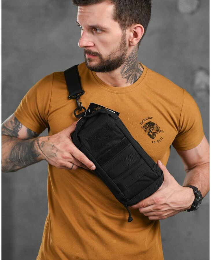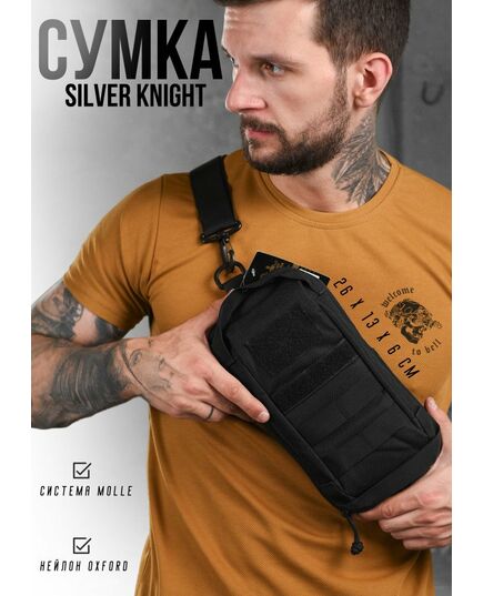 Сумка на плечо тактическая рюкзак однолямочный silver knight черная ВН11060