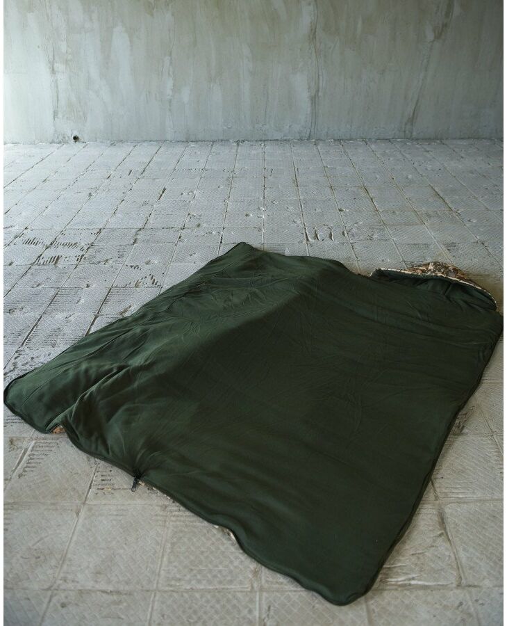 Наполнение спального мешка синтепоном плотностью 250/м2 и утренняя часть из флисового материала.