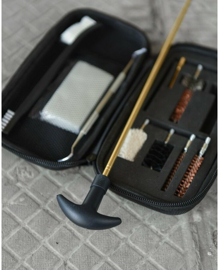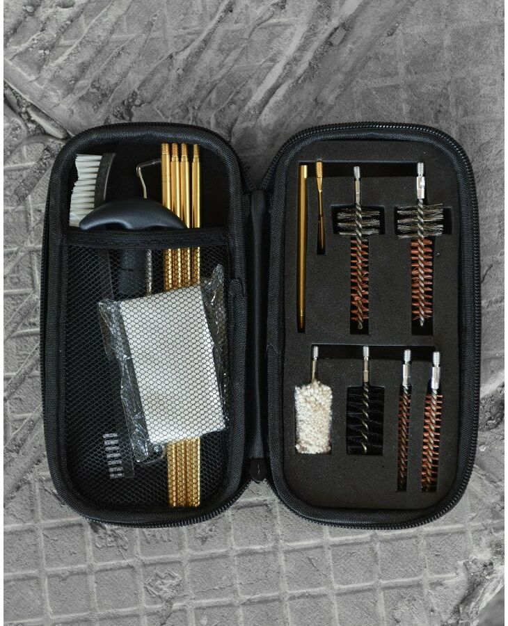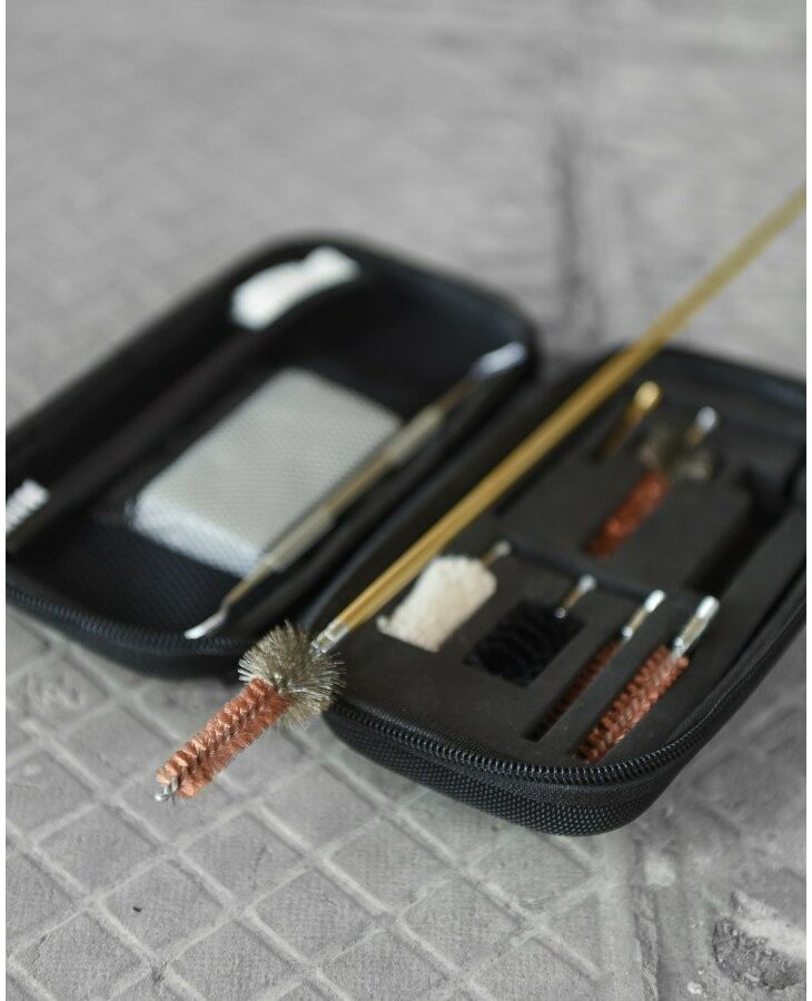 Популярный набор для чистки, которым одновременно можно почистить оружие как в .223 калибре/5.45 АК, так и в .30 калибрах (все 7.62). Это легкий полевой набор для очистки оружия весом всего 0,350 кг!