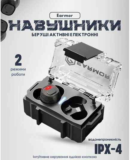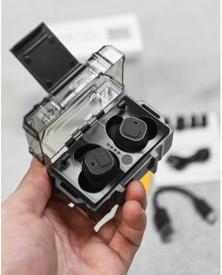 Предназначены для защиты слуха при стрельбе. Идеально подходят для условий с сильным шумом, таких как полевые условия, военные действия, стрельба, учения. Благодаря интеллектуальному алгоритму отслеживания звуков окружающей среды, наушники могут точно идентифицировать шум окружающей среды и человеческий голос. Время работы берушей от одного заряда может составлять до 8 часов, также есть уведомление о низком заряде батареи.