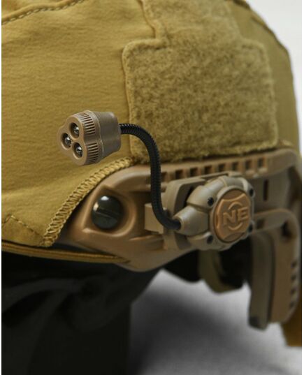 Головка оснащена двумя светодиодами: зеленым и невидимым инфракрасным (IR). Фонарик мощностью 10 люмен освещает предметы перед глазами, не раздражая их. Инфракрасный свет можно использовать с приборами ночного видения для незаметного чтения текста или карт.