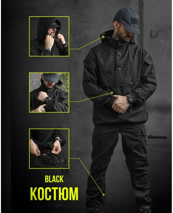 Тактический костюм горка анорак черный полиция НП5542