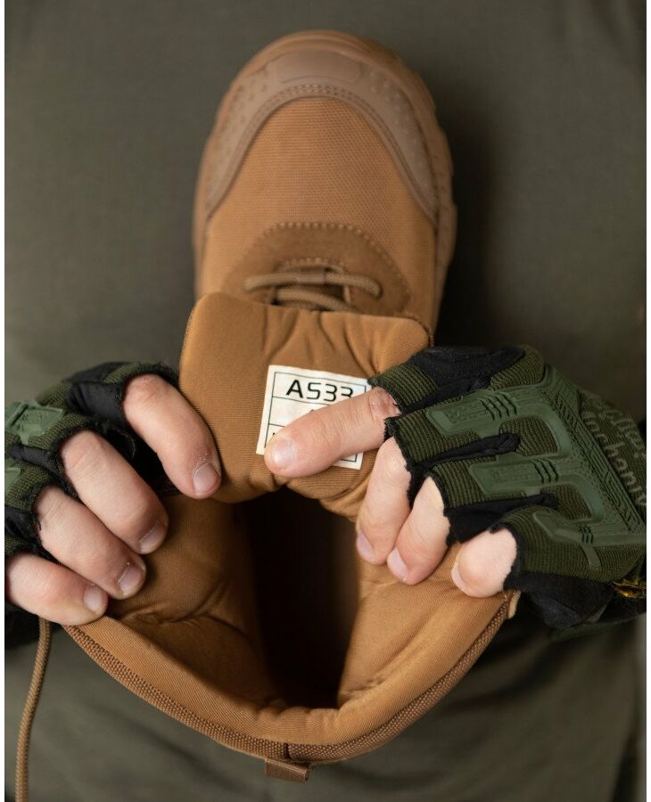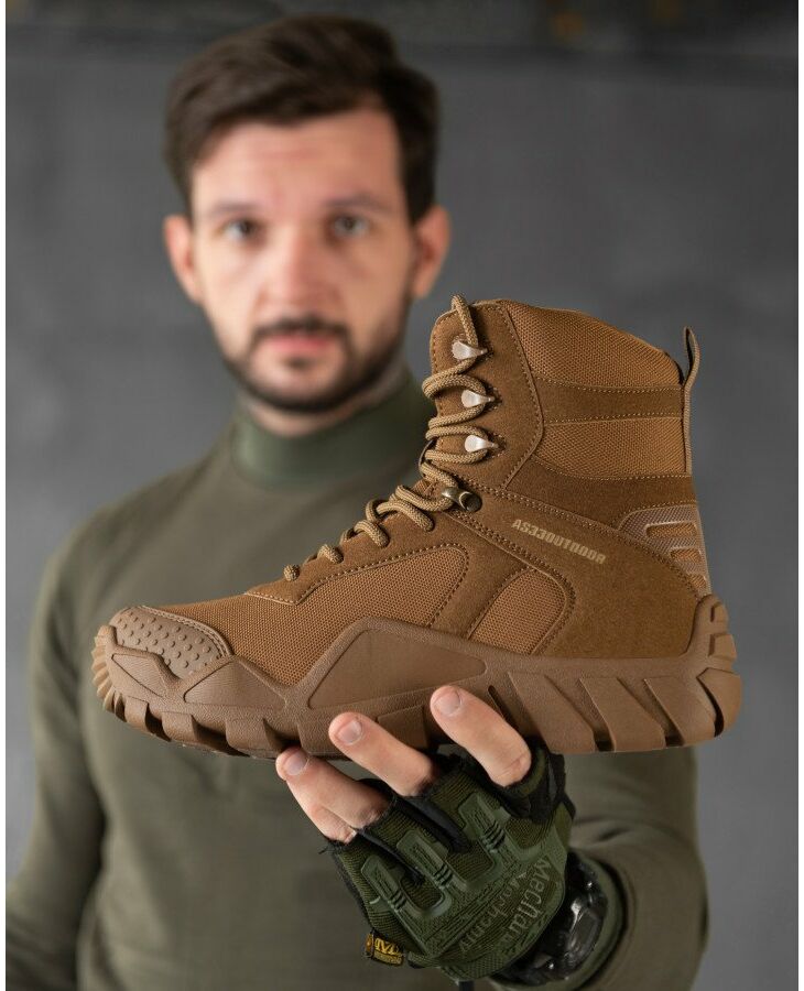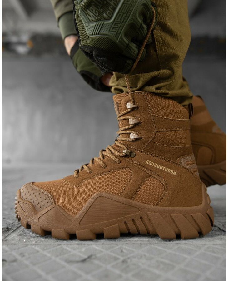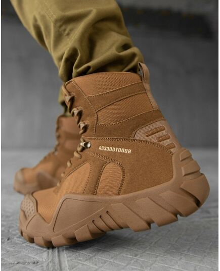 Верх комбінований, складається з трьох різних матеріалів. Перший матеріал – формована Cordura 1000D, сучасний, міцний, дихаючий матеріал, який використовують майже всі відомі бренди, другий матеріал - натуральна замша, високої якості, міцна та надійна, товщина замши від 1,6-1,8 мм, третій матеріал – формований TPU носок – головний функціонал – захист передньої частини стопи.