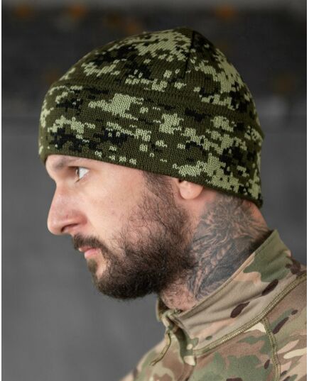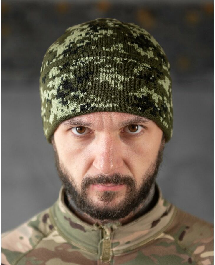 шапка пиксел флисовая с подворотом (SR-5000) 4-0!