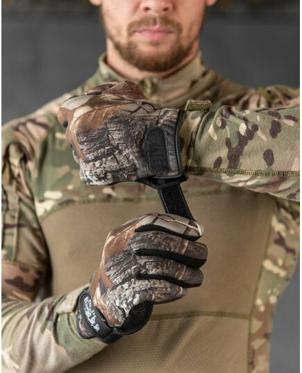 Теплые, зимние перчатки с эксклюзивной охотничьей окраской, фиксируются резинкой на запястье.