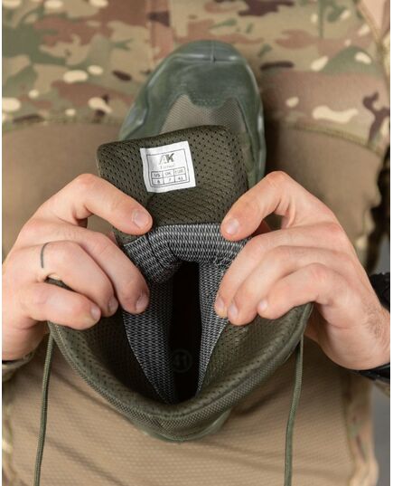 Комбинированный верх обуви из влагоотталкивающего, износостойкого материала «oxford» и натуральной гидрофобной кожи КРС (крупного рогатого скота), менее подвержен к недружественным погодным условиям (будь-то дождь, снег, слякоть). Совокупность интегрированной мембраны и природных микропор кожи - отводит излишек влаги на верхние слоя обуви для дальнейшего испарения, тем самым поддерживая оптимальный микроклимат внутри обуви. Наличие защитных элементов по периметру обуви, позволяют не опасаться прямых и касательных ударов. Так же выполняют дополнительную функцию фиксацию стопы. Двухкомпонентная PU/NR подошва с применением полиуретана разной жесткости достаточно гибкая, чтобы обеспечить необходимую амортизацию при шаге, но и достаточно твердая, чтобы не опасаться травмы стопы при движении по пересеченной местности.