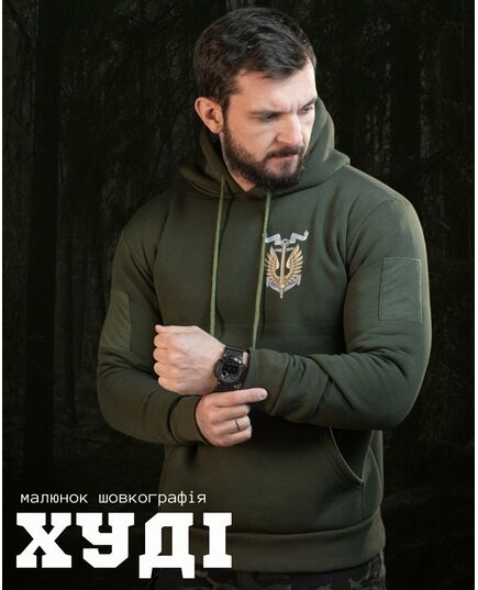 Худи CELEO на флисе Вірний завжди олива ВТ7987