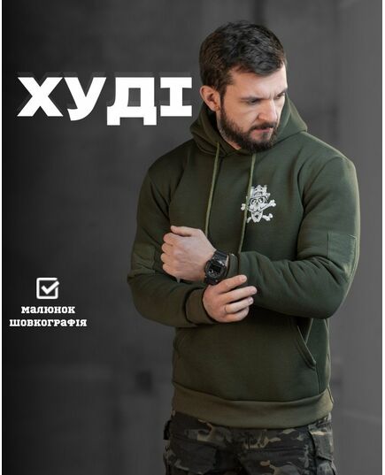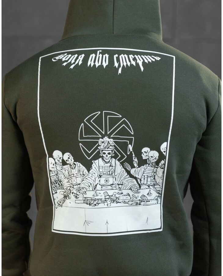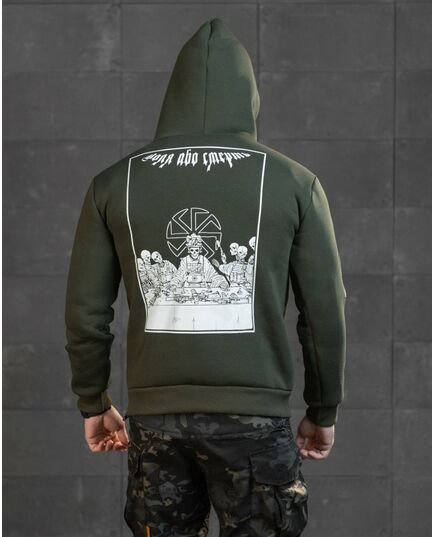 Худи CELEO на флисе Воля або смерть олива ВТ7985