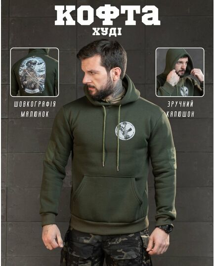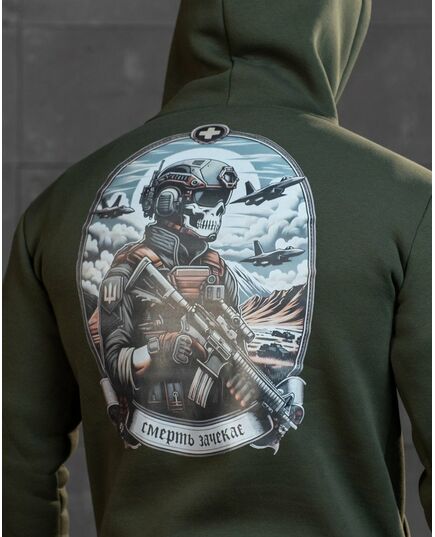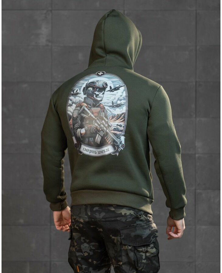 Худи CELEO на флисе Смерть зачекає олива ВТ7986