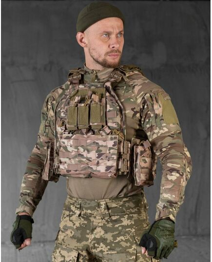 Плитоноска ZVER Мультикам с быстрым сбросом. MOLLE 11 подсумков ВТ4749
