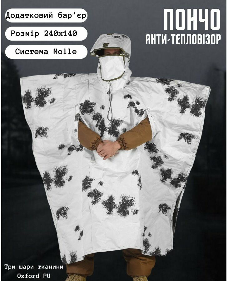 Антитепловизионное пончо с двухсторонним основанием Pixel и белой обратной стороной