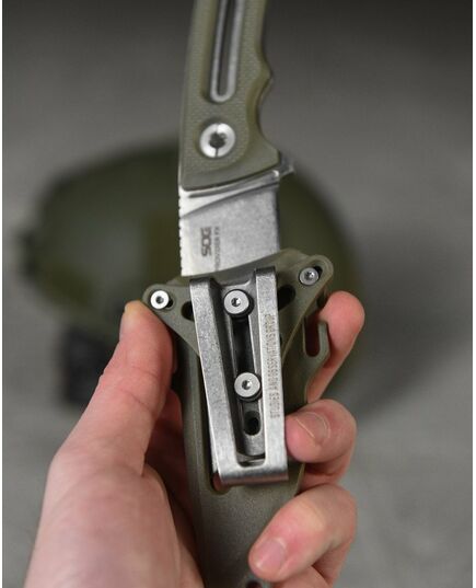Прочные и текстурированные накладки на ручке G10 обеспечивают надежный захват и легко снимаются, обеспечивая легкую и компактную упаковку. Ножны оснащены универсальной системой крепления SOG, позволяющей держать этот нож под рукой, когда он вам понадобится.