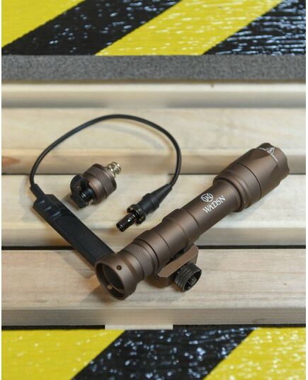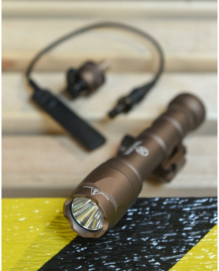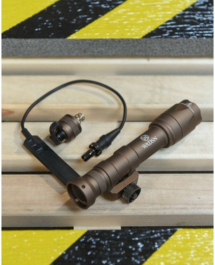 Реплика тактического фонаря Surefire Scout M600C в цвете DE. Корпус изготовлен из алюминия с анодированием. В комплекте выносная кнопка, а так же быстросъемное крепление. В фонаре используется диод CREE5, мощностью 280 Люмен. Нанесены оригинальные маркировки.