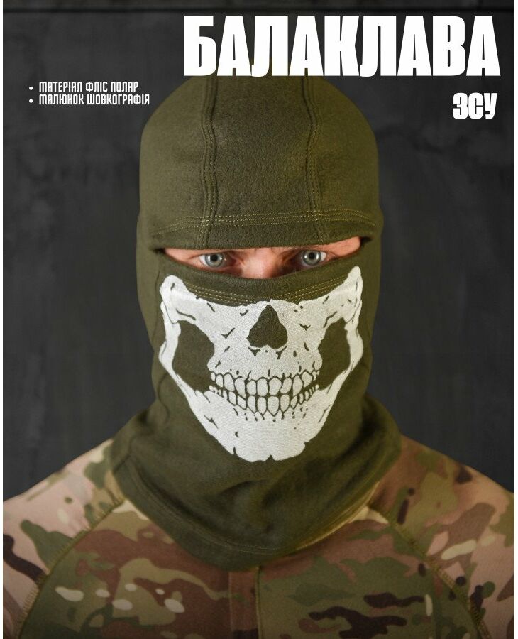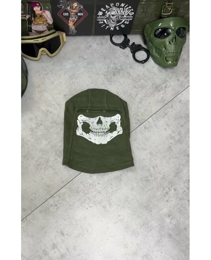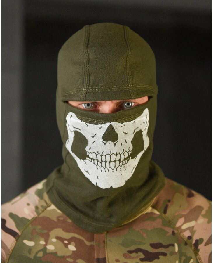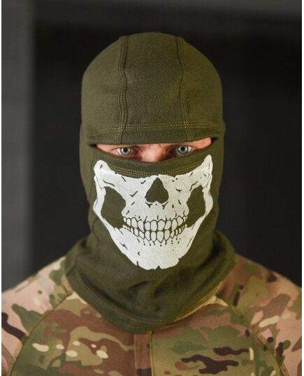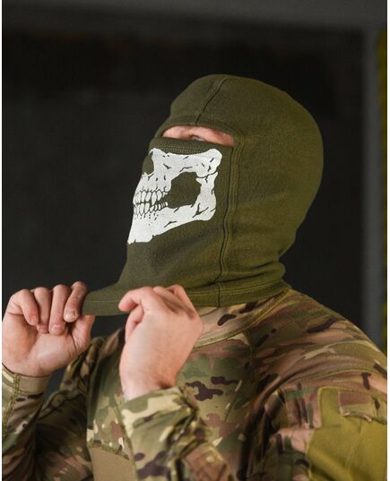 Флисовая балаклава олива череп ВТ4798