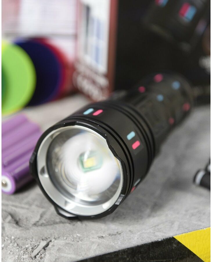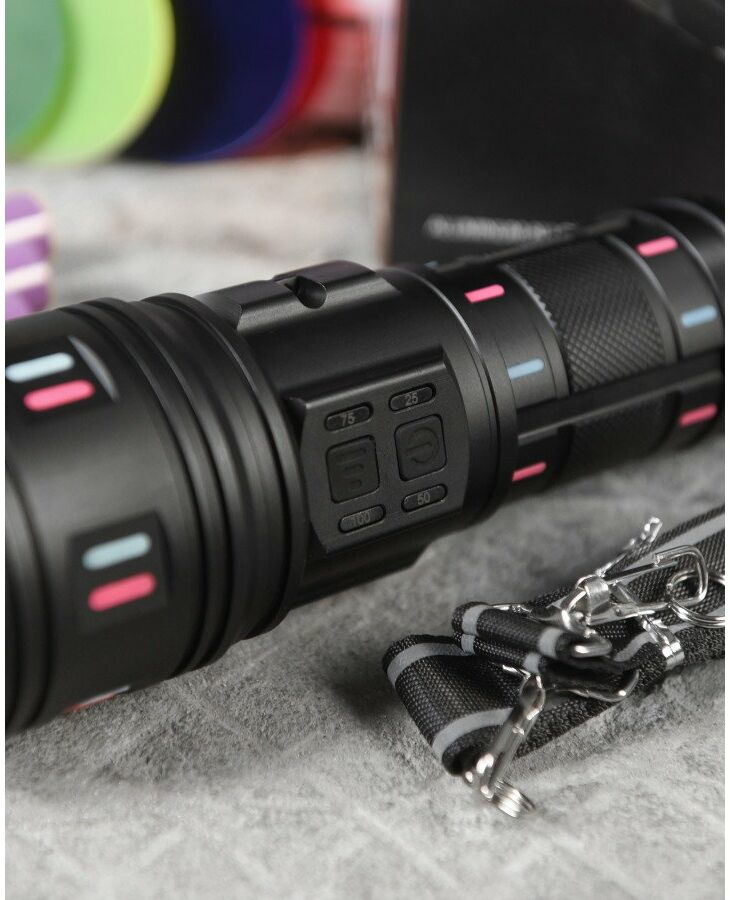 Комплектация Комфорт: фонарь, 4х18650 аккумулятора, кабель USB-Type-C, 5 фильтров