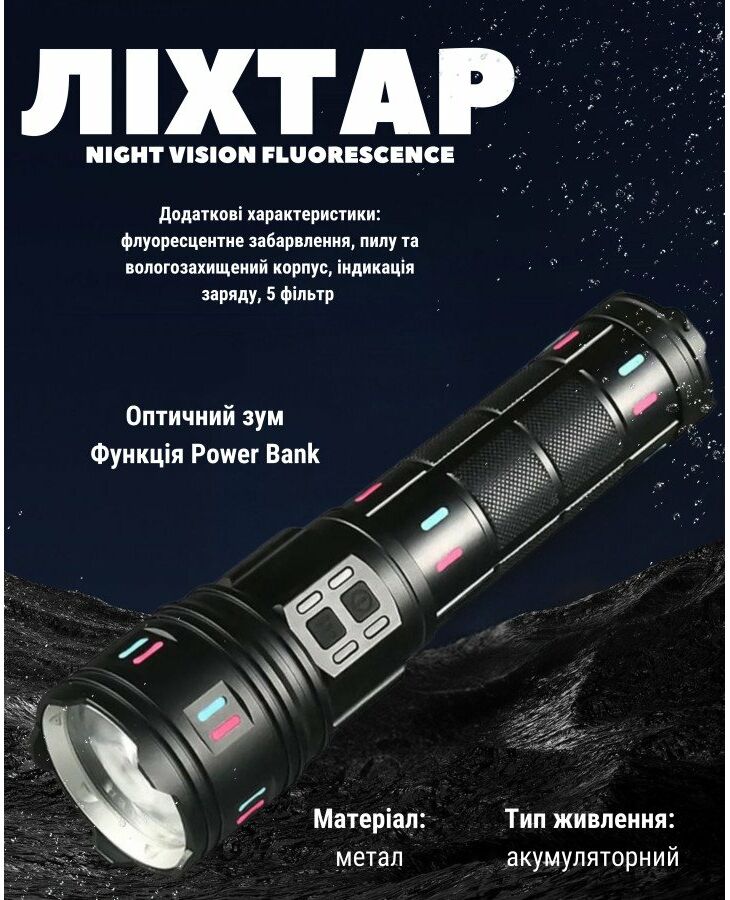 Дополнительные характеристики: флуоресцентная окраска, пыли и влагозащищенный корпус, индикация заряда, 5 фильтров Джерело: