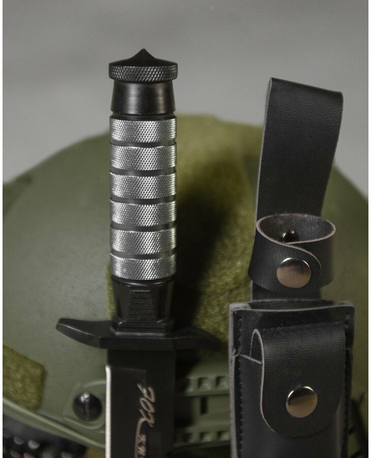 Нож изготовлен из прочной стали с защитным покрытием от коррозии. Рукоять ножа имеет фактурную конструкцию и изготовлена из цельного металла. Внутренняя часть ручки полая и верхнюю часть можно открутить. Этот нож разработан с учетом всех стандартов выживания армии. Продукт высокого качества подходит для использования на охоте, рыбалке и в туризме. Размер клинка - 15,8 см