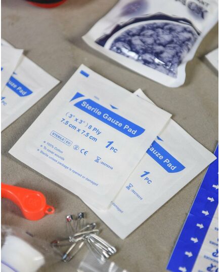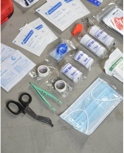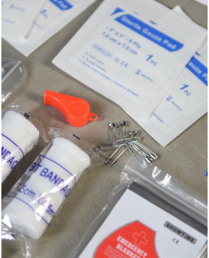 - Инструменты для оказания помощи при травмах, включая лицевую маску для СЛР, медицинские ножницы, металлические пинцеты и жгут.