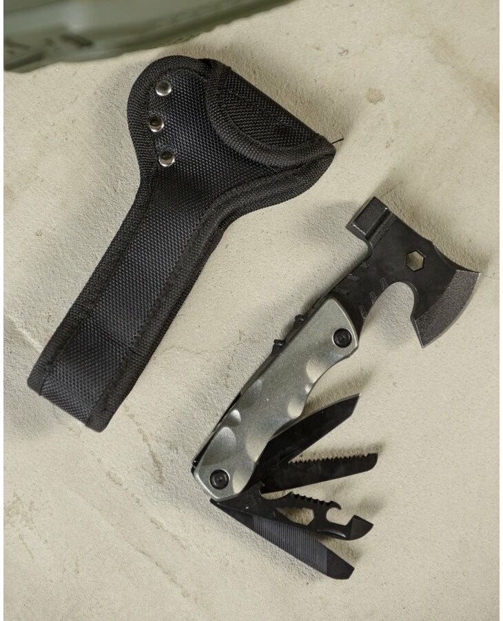 Новыми функциями этого мультитула являются молоток, топор и набор инструментов для разного рода работ.