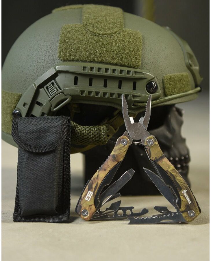Универсальный мультитул выполнен в интересной камуфлированной расцветке.