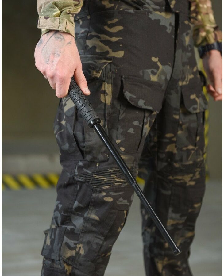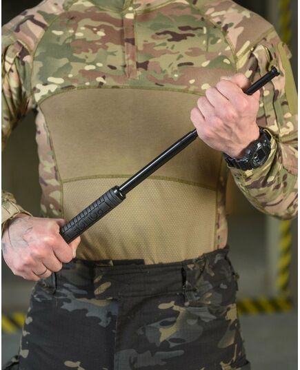 телескопическая палка длиной 21 дюйм (53 см), которая используется для защиты от нападающего. Он изготовлен из прочной металлической пружинной катушки с резиновым колпачком. В сложенном виде поместится в карман. Быстро раскладывается одним движением руки.