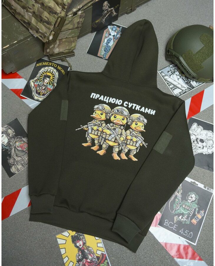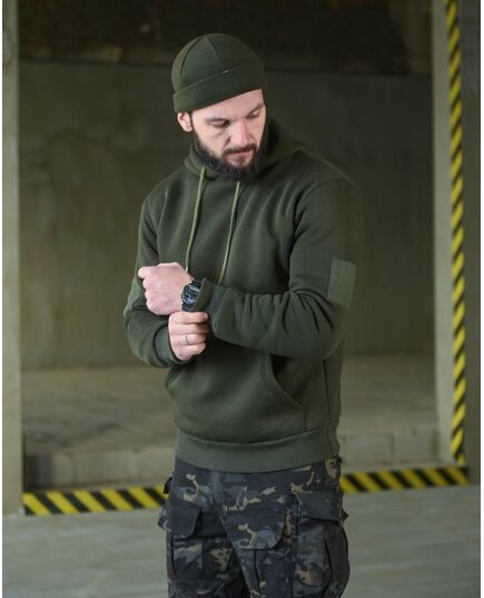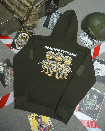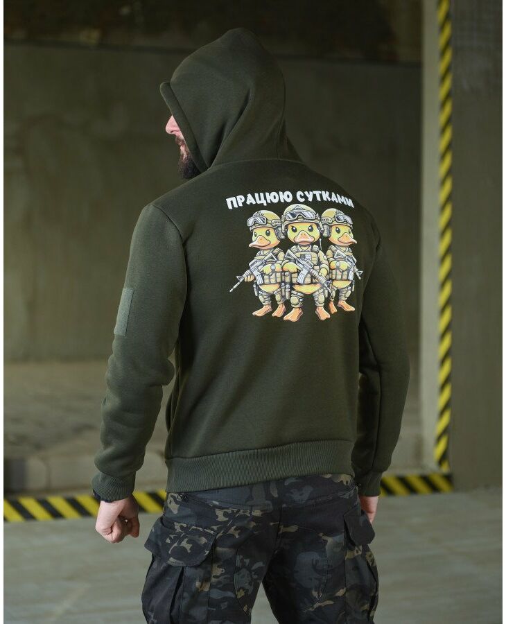 Худи CELEO на флисе Працюю сутками олива ВТ3885