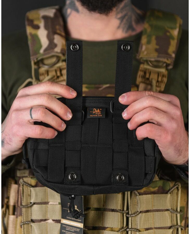 - Система крепления MOLLE: Подсумок можно легко закрепить на другом снаряжении, обеспечивая удобство и быстрый доступ.