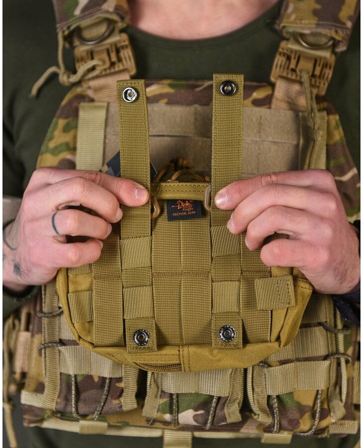 - Система крепления MOLLE: Подсумок можно легко закрепить на другом снаряжении, обеспечивая удобство и быстрый доступ.