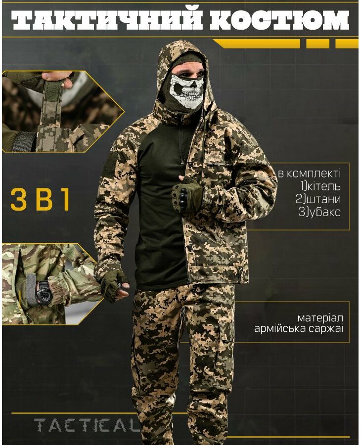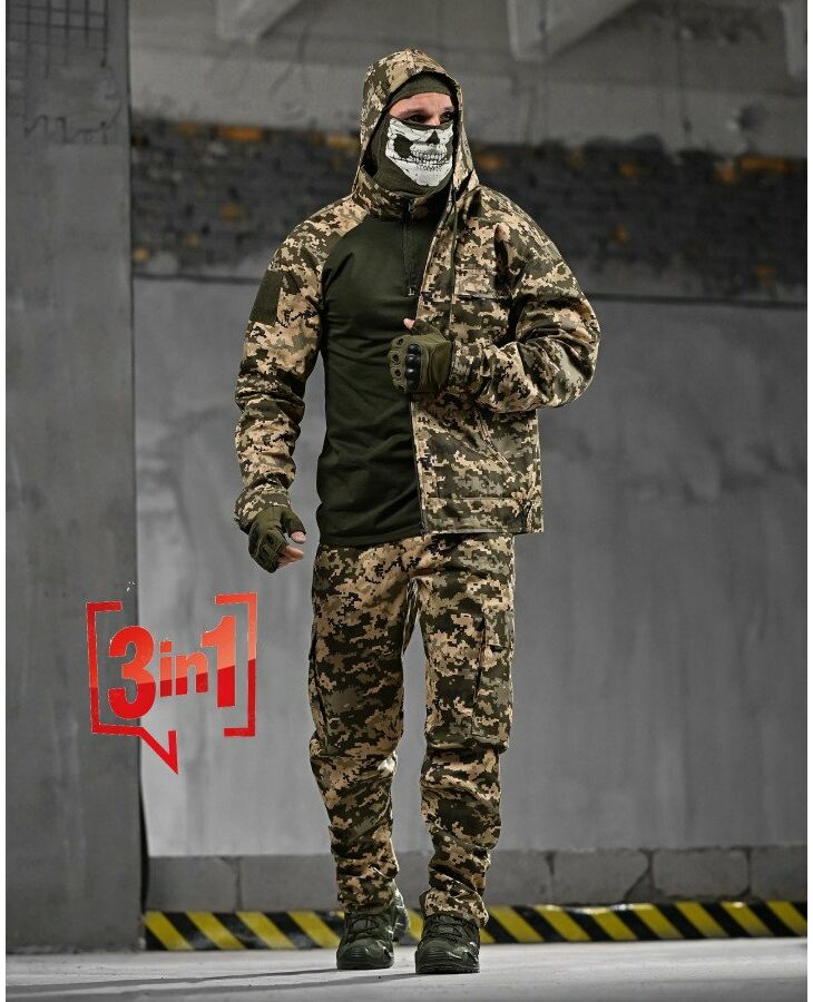 Весенний тактический костюм 3в1 HELISTRONG пиксель ДЛ6296