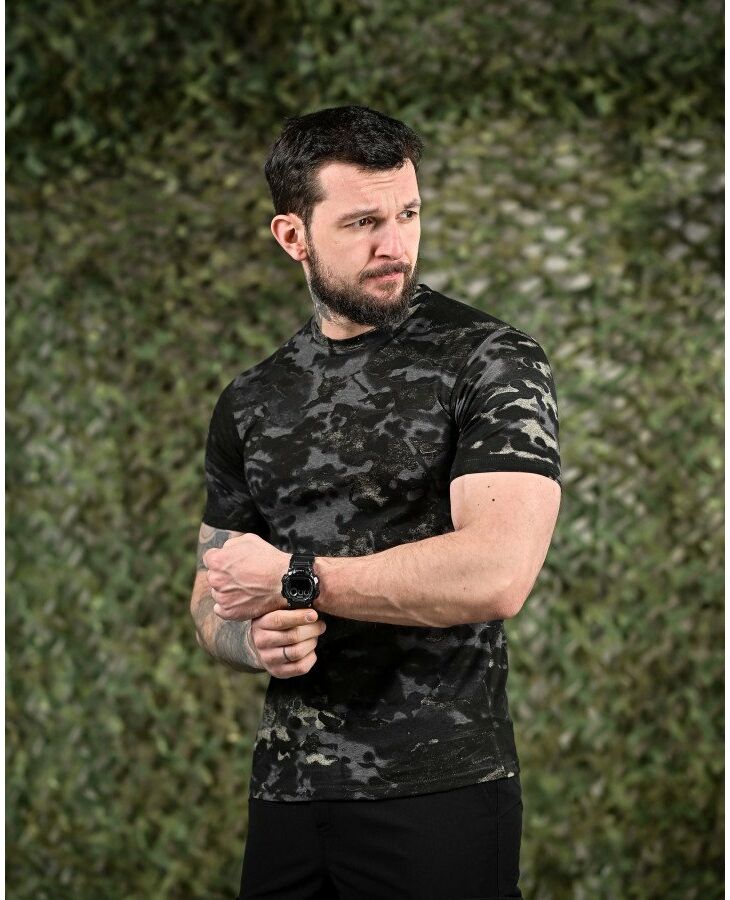 Лёгкая и эластичная футболка для повседневной носки, тренировок и активных задач. Хорошо сидит по телу и не сковывает движения.