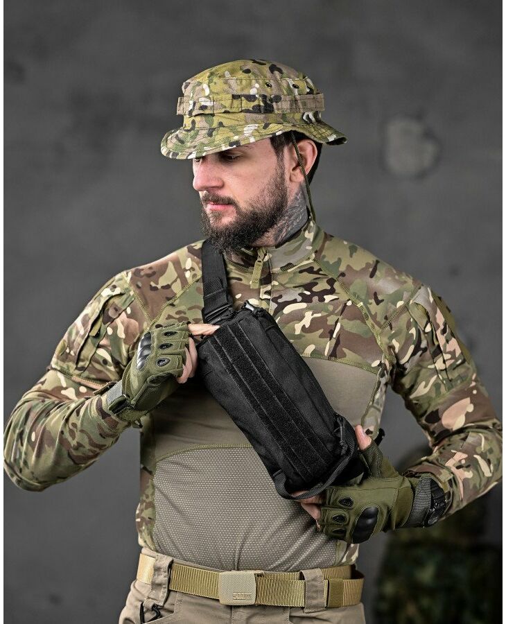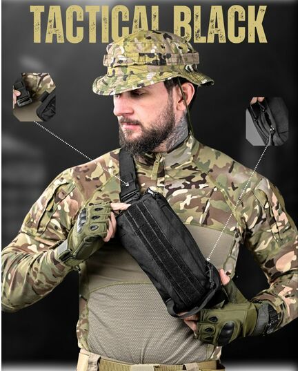 Сумка тактическая через плечо или на пояс черная ДЛ6329