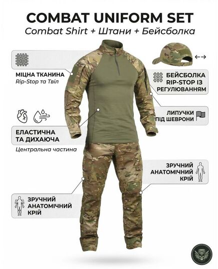 Функциональный тактический комплект разработан для использования в полевых условиях, на тренировках, стрельбище, страйкболе и для активного отдыха. Комплект сочетает прочные материалы, анатомический крой и комфорт при длительном ношении.