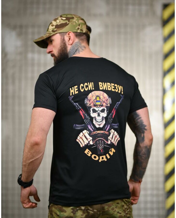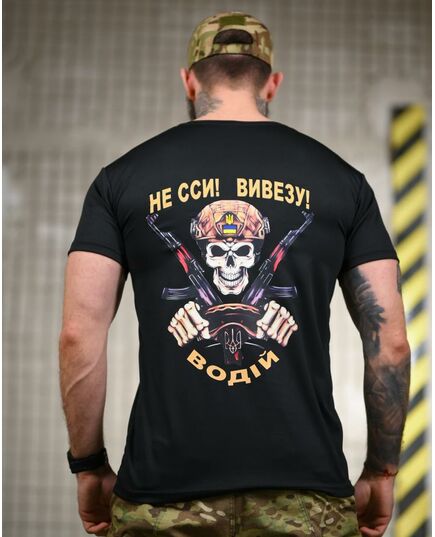 Тактическая потоотводящая футболка водитель черная ДЛ6481