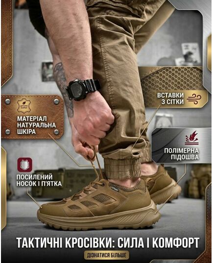 Легкі та зручні тактичні кросівки, створені для активного використання в міських умовах, на полігоні або під час тренувань. Модель поєднує міцну натуральну шкіру та вентиляційні вставки із сітки, що забезпечує оптимальний баланс між захистом і комфортом.