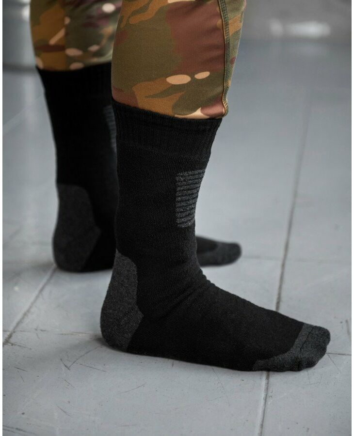 Мягкие и теплые термоноски идеально подойдут для рыбалки и охоты и ежедневного использования. В разработке носков использовано сочетание акрила, спандекса и шерсти, благодаря чему теплый воздух не идет наружу, а создает теплую прослойку между ногой и носком, не позволяя холодному воздуху проникать внутрь. Особая структура волокна быстро впитывает и выводит наружу влагу, оставляя ноги сухими и теплыми. Также необходимо отметить высокую износостойкость носков.
