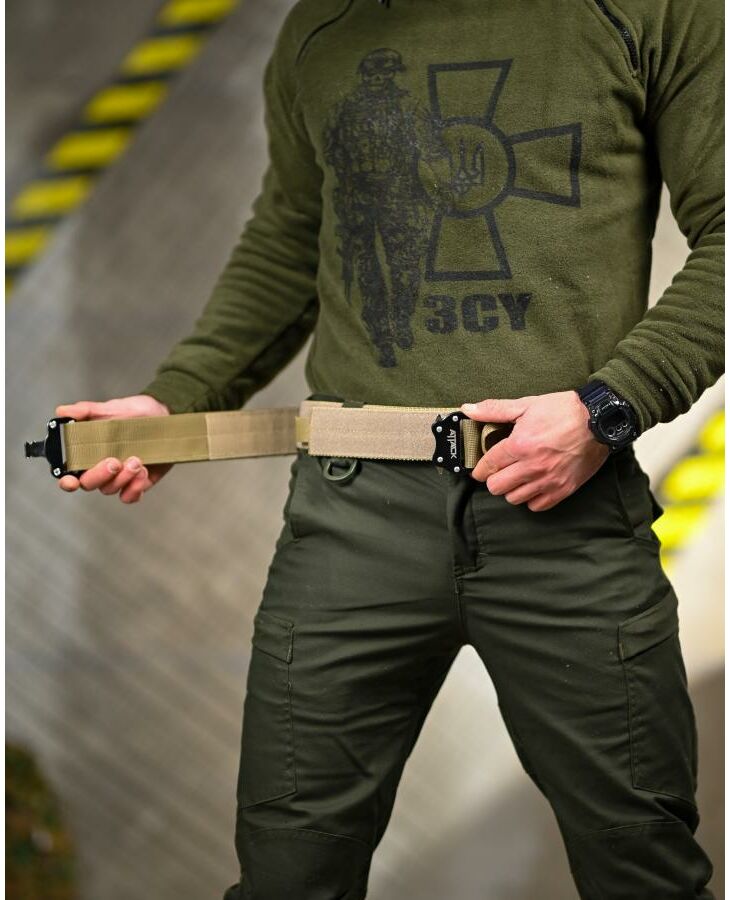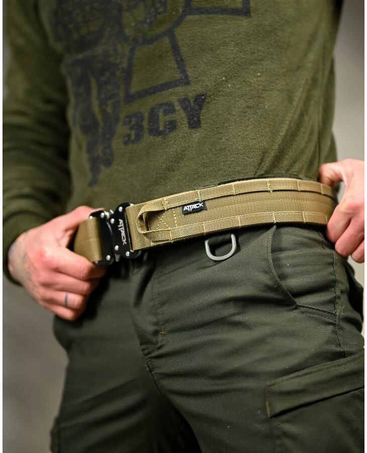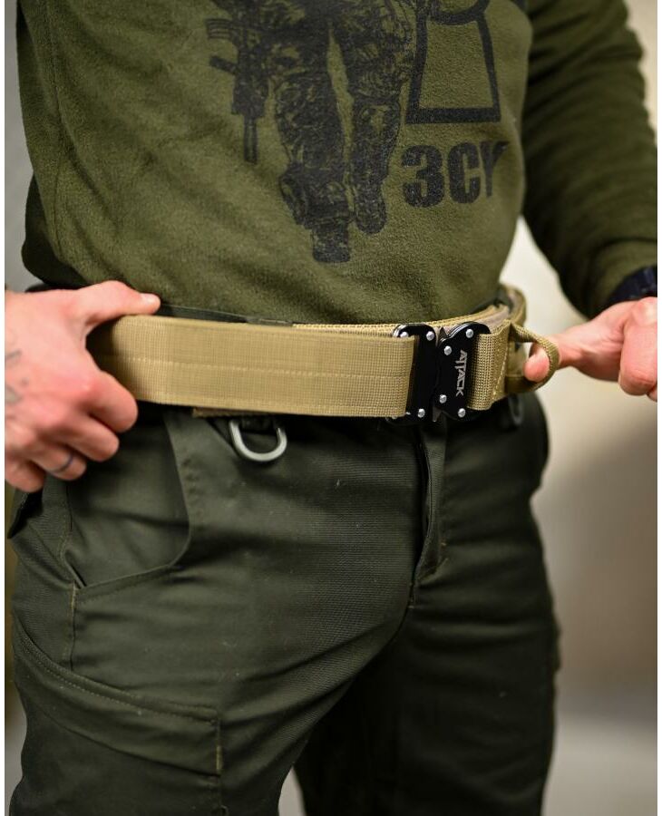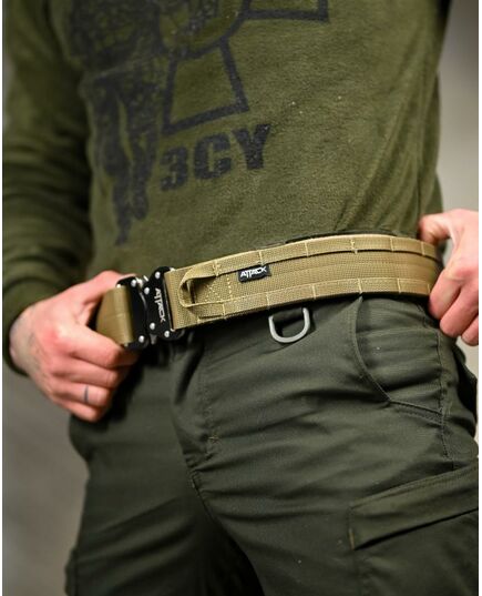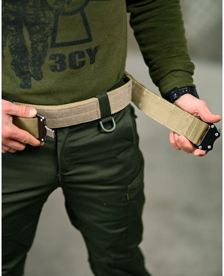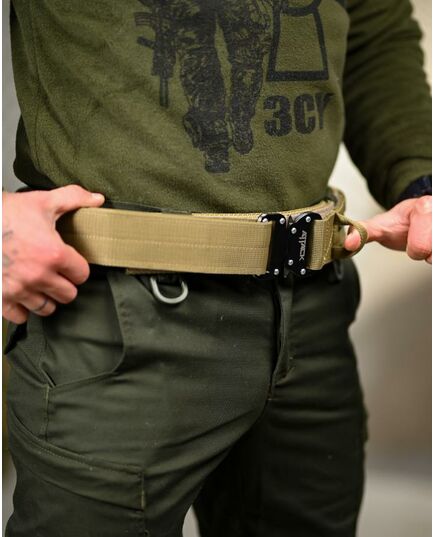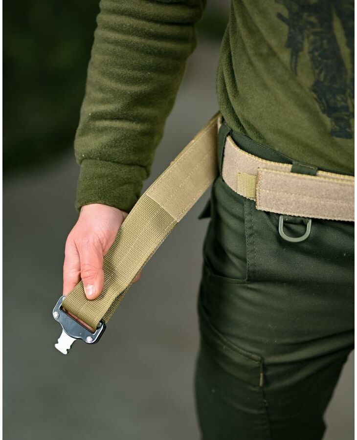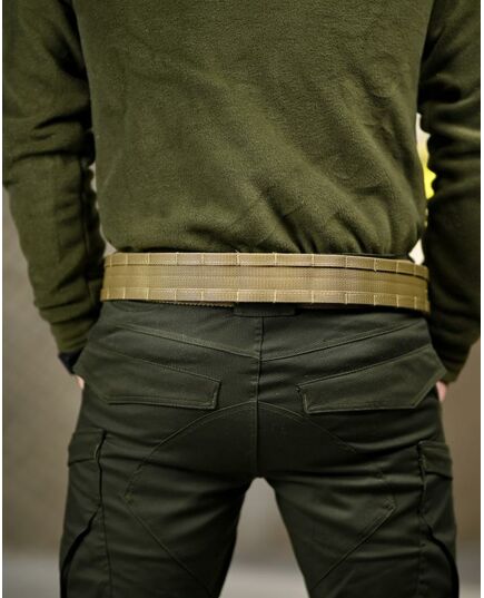 Прочный тактический ремень шириной 50 мм., изготовлен из стойкого к истиранию и повреждениям нейлона. Пояс состоит из внутренней и наружной (жесткой) ленты, регулируемой по размеру. Внутренняя часть пояса изготовлена из стропы 40 мм.) с наружной застежкой в виде липучки. Пряжка из нейлона помогает регулировать длину пояса, а также обеспечивает его застегивание. Наружный ремень состоит из нейлоновых строп, изготовленных жаккардовым методом 50 мм., между которыми вшито пластиковое ребро жесткости. Внутренняя сторона имеет застежку-липучку, с помощью которой ремень соединяется с внутренней частью. Тактический ремень Ranger Belt пояс подходит как для повседневной носки, так и для переноски оружия или снаряжения, и имеет систему MOLLE , чтобы можно было прикрепить дополнительные погрузчики и аксессуары. Надежное закрытие обеспечивает металлический фастекс типа Cobra. Легкий и мощный.