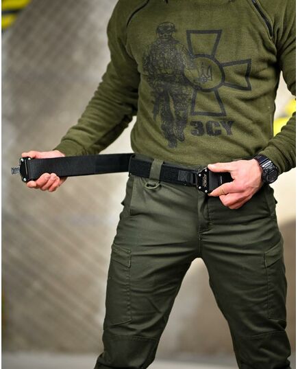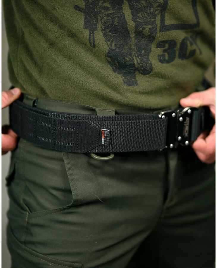 Прочный тактический ремень шириной 50 мм., изготовлен из стойкого к истиранию и повреждениям нейлона. Пояс состоит из внутренней и наружной (жесткой) ленты, регулируемой по размеру. Внутренняя часть пояса изготовлена из стропы 40 мм.) с наружной застежкой в виде липучки. Пряжка из нейлона помогает регулировать длину пояса, а также обеспечивает его застегивание. Наружный ремень состоит из нейлоновых строп, изготовленных жаккардовым методом 50 мм., между которыми вшито пластиковое ребро жесткости. Внутренняя сторона имеет застежку-липучку, с помощью которой ремень соединяется с внутренней частью. Тактический ремень Ranger Belt пояс подходит как для повседневной носки, так и для переноски оружия или снаряжения, и имеет систему MOLLE , чтобы можно было прикрепить дополнительные погрузчики и аксессуары. Надежное закрытие обеспечивает металлический фастекс типа Cobra. Легкий и мощный.