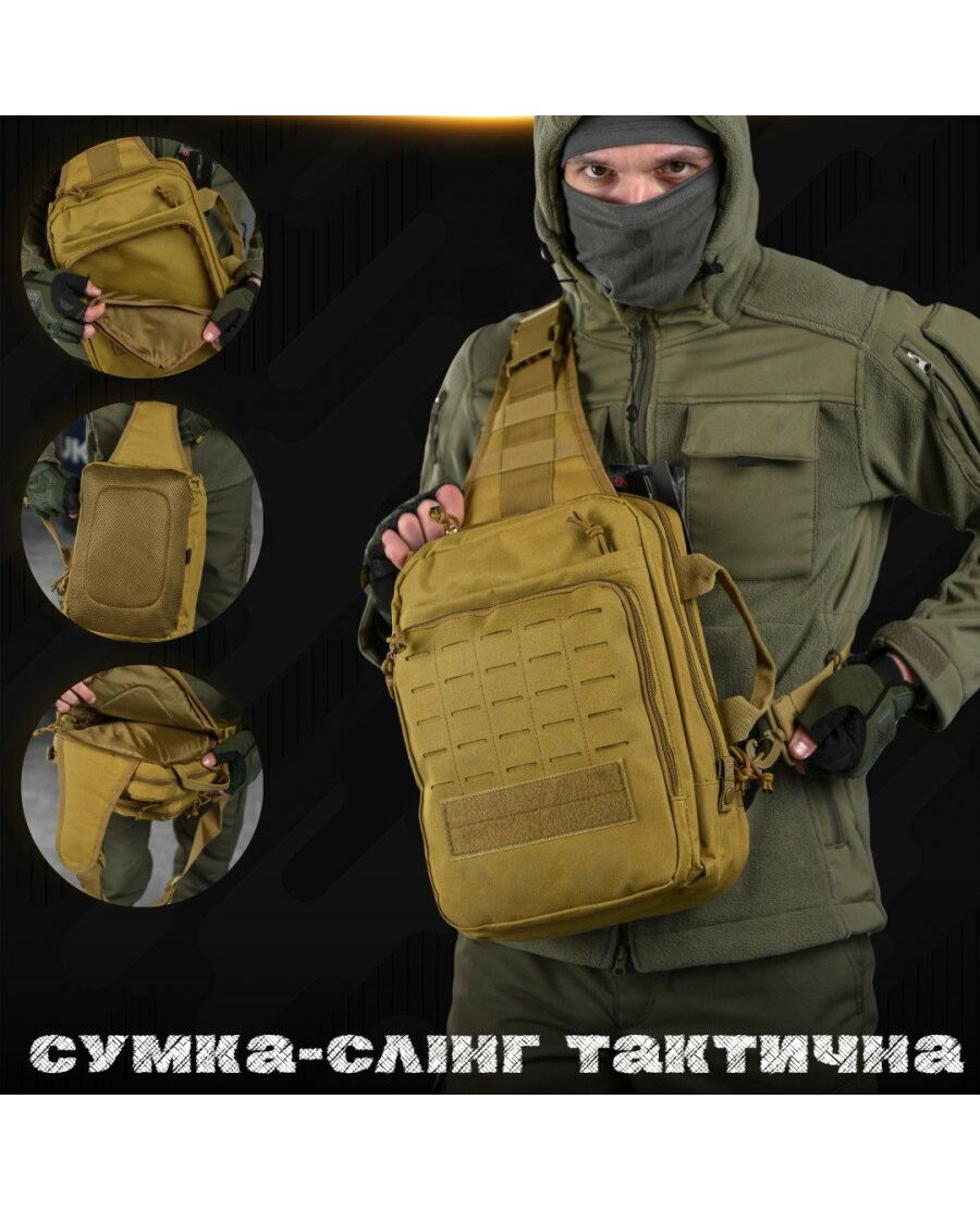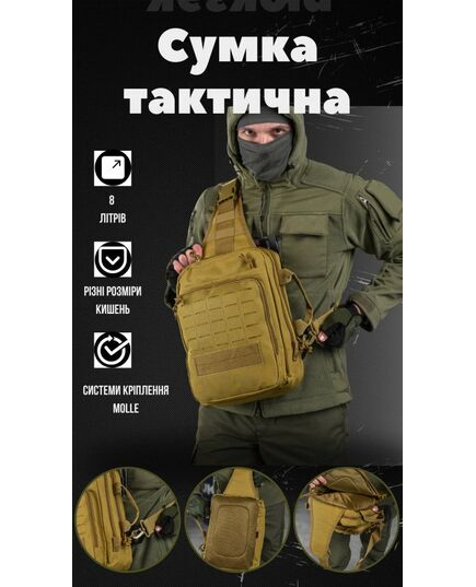 Сумка-слинг тактическая с одной лямкой SILVER KNIGHT 8л coyot ВТ6397