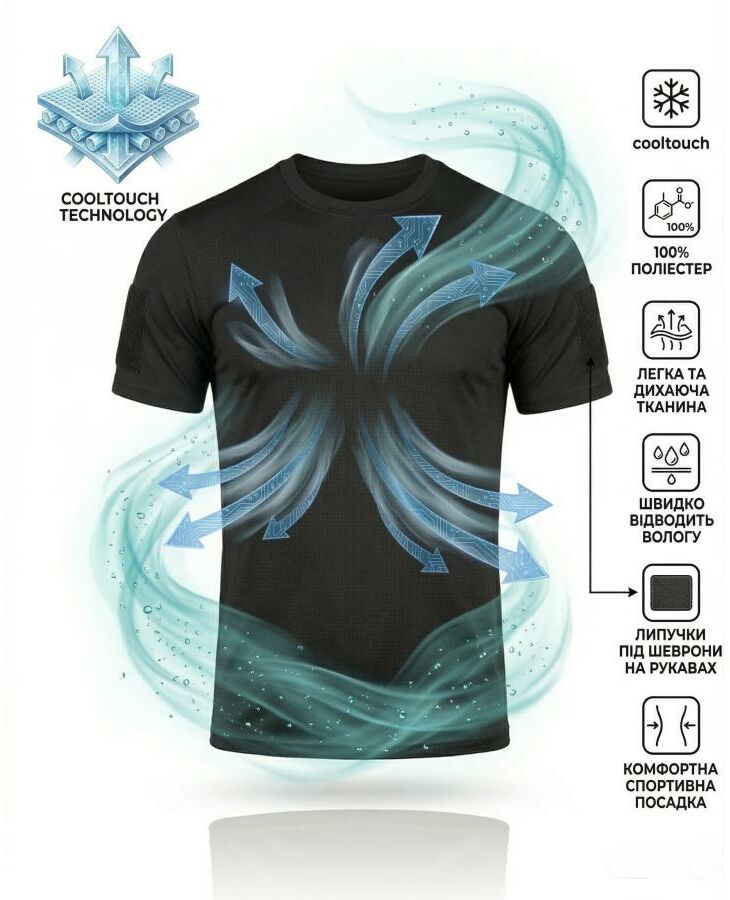 Лёгкая тактическая футболка из ткани Cooltouch, разработанная для активного использования. Отлично подходит для тренировок, службы, страйкбола, тактических задач и повседневной носки.